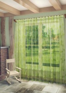 - Провансалски стил се проявява в декорацията на помещения с текстил с флорални шарки. Ленени завеси с малки зелени орнаменти ще придадат на помещението простота и ефир, характерни за тази посока, а приглушеният цвят на зелената мента в тюл ще разпръсне нежно и нежно слънчевата светлина..