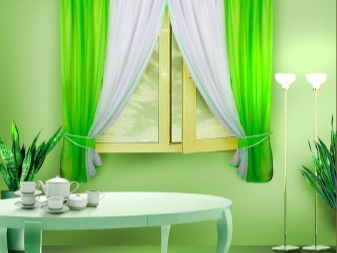 В зависимост от това къде точно се планира да се закачат тези или онези зелени завеси, се избират техният стил, сянка, драперия: