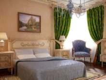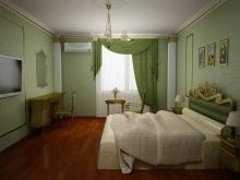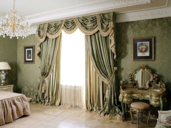 - Класически стил предполага луксозна и величествена обстановка. Той използва цвета на злато, дърво, кехлибар, които са в хармония с изумрудените, маслиновите и нефритовите цветове. Допустимо е отворът на прозореца да се подреди с тежки завеси с ламбрекени и грайфери. Тъмнозелените шикозни завеси вървят добре с позлатени мебели с тъмна тапицерия.