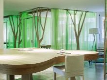 - муселин – необичайна завеса, състояща се от много преплетени нишки. Позволява на въздуха да преминава свободно в стаята и поради тъмнозеления си цвят потъмнява светлината.