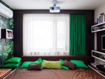 Светлозеленият оттенък визуално увеличава стаята. Екстравагантният цвят на лайм, от друга страна, се използва в големи помещения. Зелен нюанс, близо до ярко жълт цвят в палитрата, насърчава действията. Синьо-зеленият тон на завесите, от друга страна, успокоява психиката. А маслиненият цвят на завесите насърчава концентрацията.