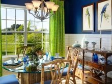 - Комбинация от синьо и зелено използвани за създаване на живи дневни. Заедно те правят страхотни цветни акценти в бяла всекидневна. Такъв тандем може да бъде заглушен с кафяв цвят – това ще направи интериора по -спокоен. Дълбоките синьо-зелени нюанси са основата за морски поглед. Заедно те създават оригинална и изразителна среда..