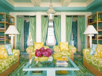 Излишъкът му в интериора обаче предизвиква меланхолия и униние. За да избегнете този недостатък, можете да ограничите използването му. Например, закачете само зелени завеси и полилей.